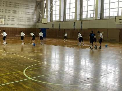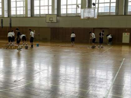 8月30日、2学期に備えて体育館フロアのワックスがけを行いました。施設や備品を大切に長く使うためにはメンテナンスが必要です。