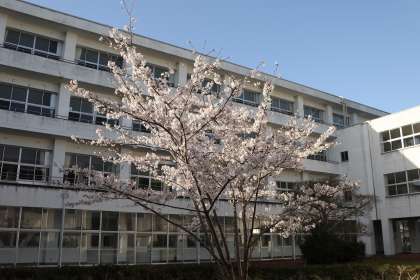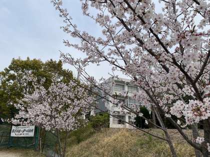 常滑中学校の満開の桜が旅立つ教職員の皆さんへエールを送っているように見えます。