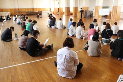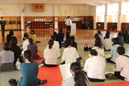 3年生は体育館、2年生は武道場、1年生は体操場で行いました。