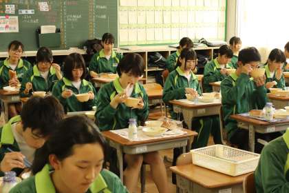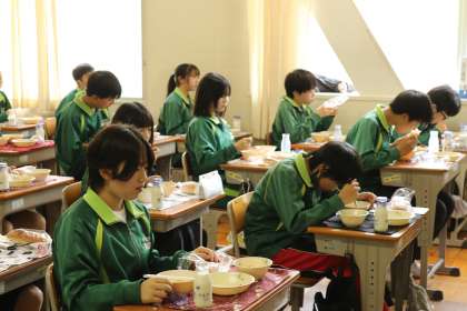 常滑中学校では、しばらく前向き給食を継続していきます。