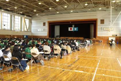 3年生を対象に5,6時間目に体育館で進路説明会を行いました。