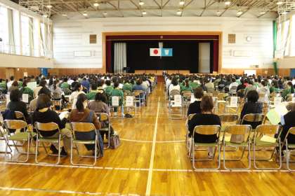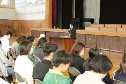 進路指導主事の話を親子で真剣に聞いている姿が印象的でした。