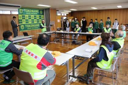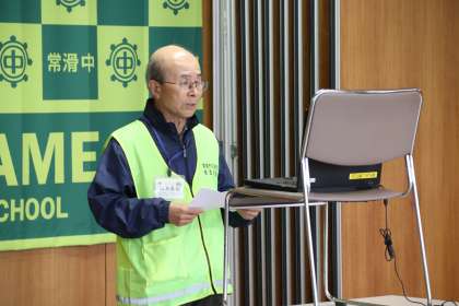 長年にわたり見守っていただいた、鯉江さん、肥田さんが今年度で見守り隊をご勇退されることになりました。本当にさみしいことですが、また、いい報告ができるよう常滑中学校全校生徒と全職員で交通安全及び教育活動を推進していきたいと思います。