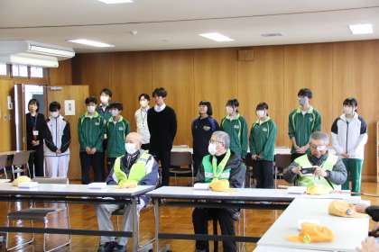 見守り隊感謝の会を会議室で実施し、その様子を各教室で全校生徒が視聴しました。見守り隊のみなさんの中から、10名のみなさんにご来校いただくことができました。