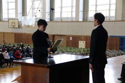 今年の卒業生は77回生で、幹事代表として、3年6組伊奈步結夢さんがあいさつしました。母校に誇りをもつとともに、これからも常滑中学校、常中生を温かく見守っていただきたいと思います!