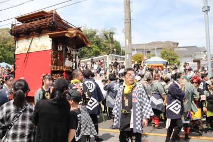 保楽車(保示)、常磐車(市場)、常山車(山方)、常石車(奥条)、世楽車(瀬木)、神明車(北条)が勢揃い。常滑は春も熱いです!