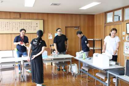 常滑中コミュニティ・スクールは夏休みに地域のお祭りでバザー品を出店します。保護者のみなさんからご提供いただいた生地や材料をバザー品にするための準備をしていただきました。