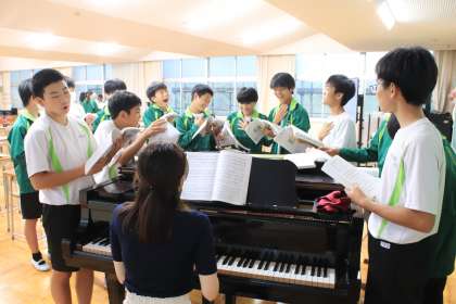 2024 10 03 【授業の風景】2-1合唱曲「yell」 公開日 2024/10/03 更新日 2024/10/03 校長より 音楽の授業では、合唱コンクールの曲の練習をしています。 2年1組の「yell」。乞うご期待ください☆ いいね(0)