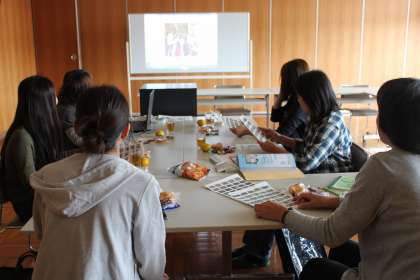 (写真左)PTA調査広報委員会の1つのチームが,会議室で『PTA広報ふれあい』を作成している様子です。PTA評議員の皆様,いつもありがとうございます。