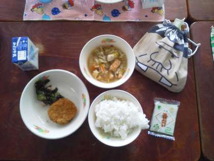 今日の給食には、常滑産の酒粕が出ました。粕汁としておいしくいただきました。