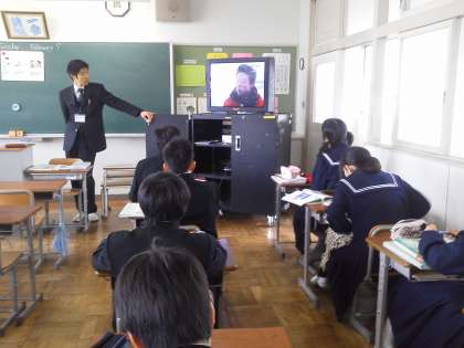 英語の授業の風景です。テレビを使って、映像を見て勉強しています。