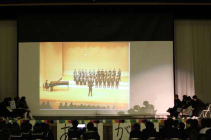 先日,行われた3年生を送る会では,1年生は合唱を行いました。