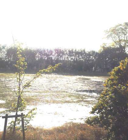 しかし、午後は一変。太陽が元気に顔を出した。写真は5時前頃。乾いていた地面がいつもと違う表情を見せていたので、思わず写真を撮った。まぶしいくらいの光の中を、部活動の生徒の陰が2つ動いていた。(寺)