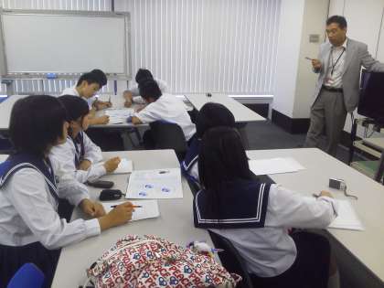 班別研修では、自分たちで選んだ見学先で、さまざまな経験をする事ができました。写真はロッテの会社で、お菓子開発やキシリトールについての講義をうけているところです。(寺)