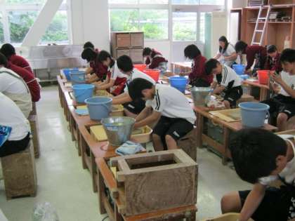 1年生の総合的な学習の時間を使って、ろくろ実習を行いました。講師に清澤豪さんと平野政志さんをお招きして、常滑の郷土を支えてきた窯業について学びました。生徒が地域の産業や歴史への興味・関心を高めてくれることを願っています。将来の人間国宝が誕生するかもしれません。(お)