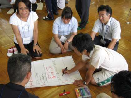 ライオンズクエスト2日目の研修が行われました。今日は教員が生徒役となり模擬授業を行いました。目標の立て方,本当の自信をつける方法,前向きの考え方によってより健康的な行動をとる方法について授業方法を考えました。この研修を通して,教員の集団が一層よい雰囲気の集団に近付いてきました。(お)