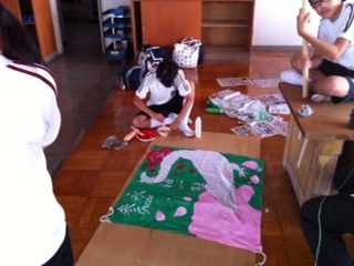 運動会にむけて、各クラスが趣向を凝らした応援旗を制作しています。迫力のある応援の旗をご期待下さい。(K)