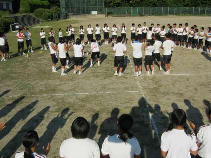 運動会の縦割り班である色別会を行いました。3年生を中心に練習を重ねてきました。前回の色別会の時よりも、動きも声の大きさもパワーアップしていました。当日が楽しみです。(お)
