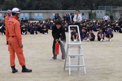 代表の生徒による消火器訓練も行われ、有意義な訓練となりました。(さわ)