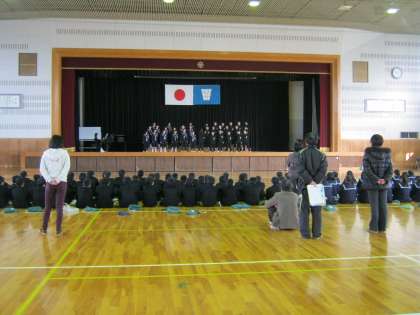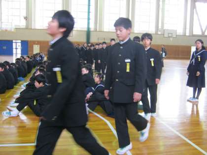 今日は体育館で1年生が本番を想定したリハーサルを行いました。
