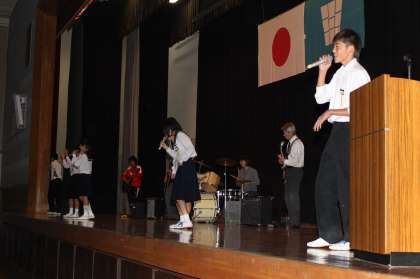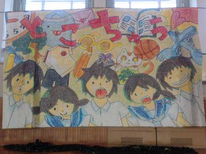 待ちに待った文化祭が行われました。オープニングセレモニーでは,生徒会執行部によるオープニング映像,ビッグアート披露,生徒会執行部と先生方によるバンド演奏がありました。全校生徒が1cm四方の折り紙を貼り合わせて作ったビッグアートパーツを組み合わせると,とても大きな1つの絵がきれいに完成していました。大きな歓声が上がり,常中生が1つになった瞬間でした。(一)
