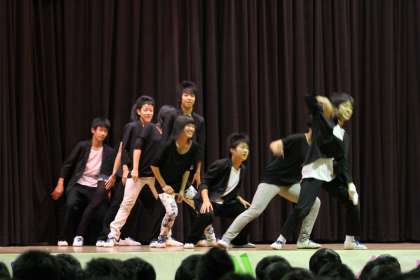 オープニングセレモニーの後は,ステージ発表が行われました。吹奏楽部はコンクールで発表した曲やヒット曲メドレーを演奏しました。有志発表ではダンス,お囃子,トーチトワリング,ヨーヨーなど10組の団体が行いました。さらに,先生方による「じょいふる」と「女々しくて」のバンド演奏もあり,午前の部はステージも観客もとても盛り上がっていました。(一)