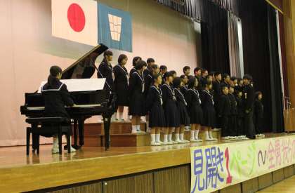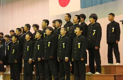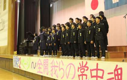 文化祭2日目の合唱コンクールが行われました。どのクラスも美しい歌声を響かせていました。特に,3年生の合唱は立派な仕上がりで,どのクラスも僅差だったそうです。各学年の最優秀賞は,1年C組,2年A組,3年D組でした。(一)