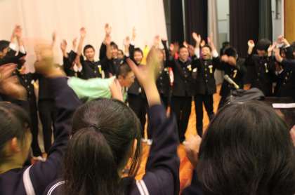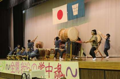 合唱コンクールが終わると,最後のエンディングセレモニーが行われました。日本福祉大学付属高等学校和太鼓部「楽鼓」のみなさんをお招きし,和太鼓演奏をしていただきました。演技を交えた迫力のある演奏に力強さを感じました。