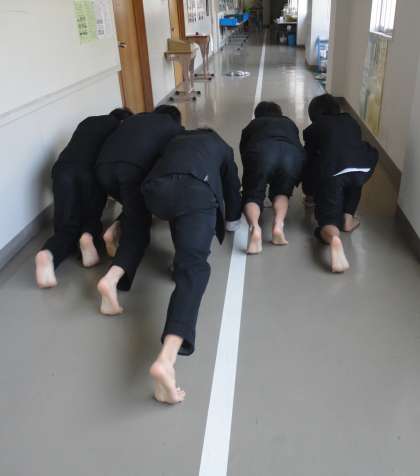 寒くて大変な廊下掃除、頑張ってますね〜!