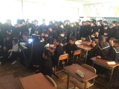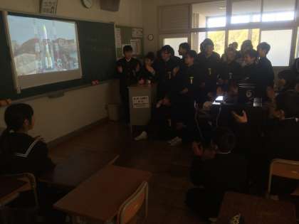 昼放課,1B教室にたくさんの生徒!小惑星探査機「はやぶさ2」を載せたH2Aロケット26号機の打ち上げをライブ映像で見ました。みんなでカウントダウンし,ロケットが力強く上っていく姿を見ると大盛り上がりでした。こんなにたくさんの生徒が見に来てくれたのは驚きでした(笑)地球に帰還するのは2020年冬。はやぶさ2,いってらっしゃい!(一)
