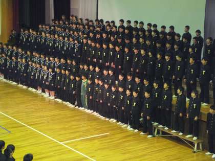 1年生の群読、合唱「地球星歌〜笑顔のために〜」です。