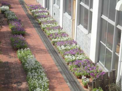 金工室前には、式で飾る花(桜草)の準備が着々と進められていました。