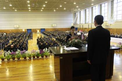 入学式が行われました。新入生少し緊張して入場し式が始まりました。新入生誓いの言葉がとても立派で、新入生のやる気を感じました。始業式の担任発表では、拍手が起きるなど例年以上に盛り上がりました。(ハム)