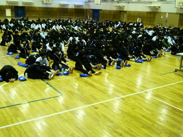 第2回学校保健委員会を2,3年生は体育館で、1年生は教室で配信を見る形で行いました。