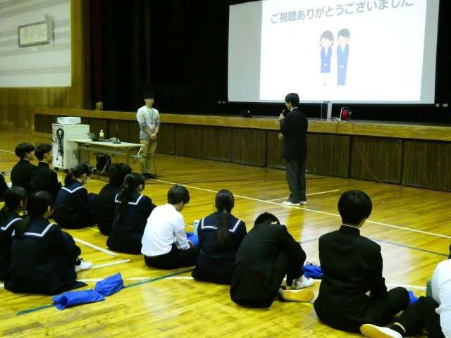 講演後に3名の生徒が質問し、その後、生徒代表がお礼の言葉を伝えました。