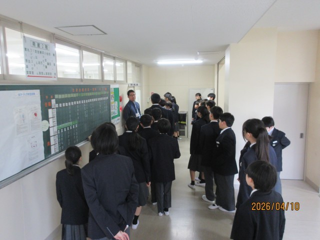 今回のように予告がある訓練だけでなく、予告なしの訓練、または実際の地震避難の際にも落ち着いて速やかに行動できるように、普段の生活から放送や先生の指示などを意識して聞くようにしましょう、と話がありました。どの生徒も真剣に聞くことができていました。