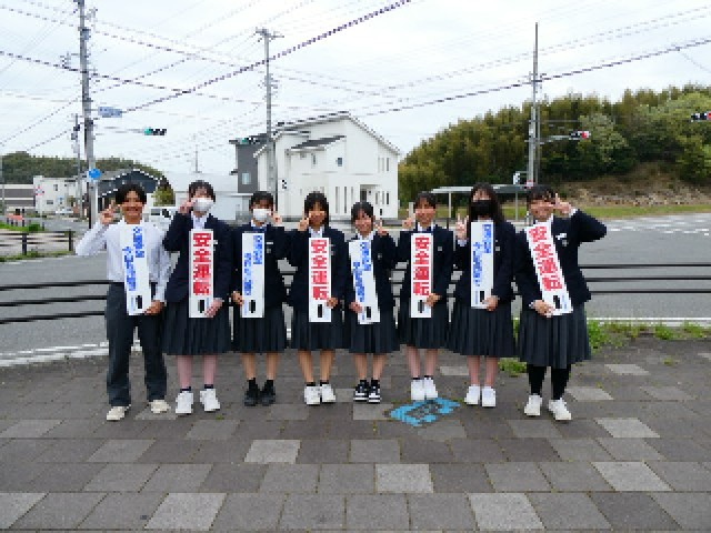 春の交通安全市民運動の一つである「交通安全サイン板大作戦」を行いました。生徒8名が常滑市市民協働課と常滑署の交通課のみなさんとともに、常滑ニュータウンの交差点で「交通安全」「安全運転 今日も元気で」のサイン板を掲げながら、自転車、歩行者、ドライバーに交通安全を呼びかけました。パトカーのマイクで交通安全を呼びかけるアナウンスもさせていただきました。貴重な体験をさせていただきありがとうございました!!安心安全な街づくりのために常中生が協力することができ、とてもうれしく思います。これからも地域全体でみんなの安全を守っていきましょう。