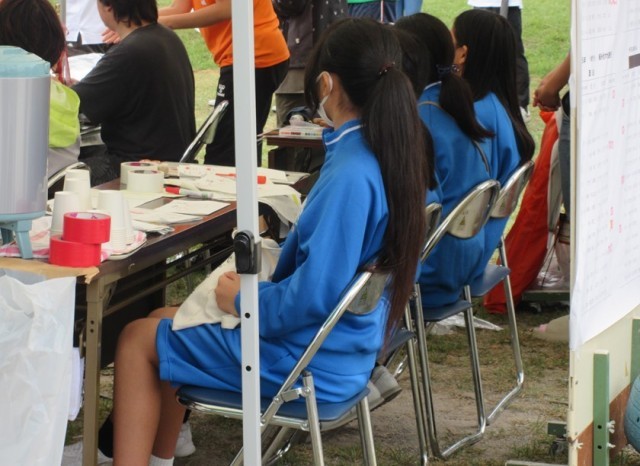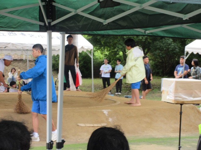 降りしきる雨の中、西浦北小学校運動場の土俵で、すもう大会が開催されました。南陵中学校の生徒12名が運営ボランティアとして参加しました。おかげさまで、すもう大会が円滑に進みました。ご協力ありがとうございました。