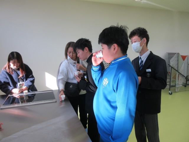 最後に、和食で大切な「出汁」のうまみを体験しました。みそをお湯で溶いたものと、みそを出汁で溶いたものを飲み比べて「うまみ」を味わうことができましたね。