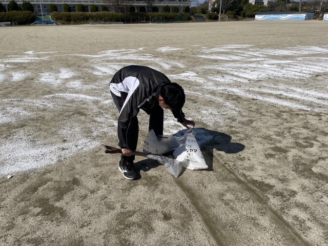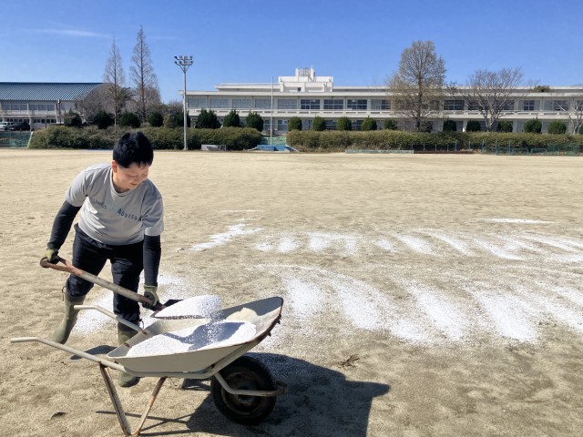 暖かな春風は、可愛らしいお花だけでなく、グラウンドを覆う雑草をも生長させてしまう。それを少しでも抑えようと、校務主任がせっせ、せっせとにがりまき…。大変な作業を一人で行なっていました…。するとそこへ現れた2人のヒーロー☺️頑張っている誰かに自然と手を差し伸べられる南陵中の先生たち。自慢の先生たちです🎶