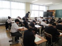 1年生は、楽譜を見ながら先輩方の歌声を頼りに覚えていました。南陵中が大切にしている「心の瞳」。