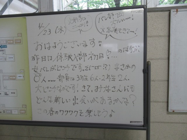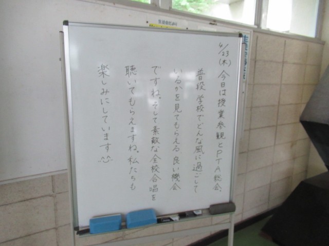 今朝はあいにくの雨。午後は、授業参観、PTA総会も予定されているので、ちょっと残念ですが、南陵中生のさわやかなあいさつで、気分は晴れ晴れ。
