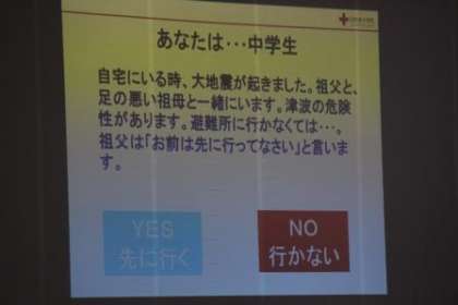 9月1日(火)5限に、日本赤十字社愛知県支部の手島先生を講師としてお招きし、防災講演会を行いました。