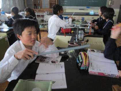 2年D組理科の実験の様子です。