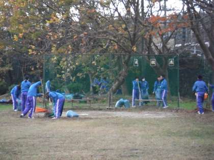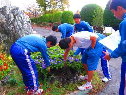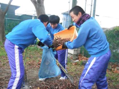 ともに校庭の枯れ葉集め、正門・来賓玄関前の花壇の整備を行いました。