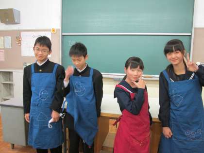 1年B組がエプロン完成しました。