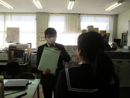 3年の生徒たちは、自分たちが受験する高校に願書を提出し、その後学校に戻って報告しました。