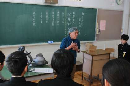 ものづくりの仕事について実物を見せながら話をしてくださいました。
