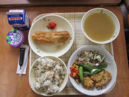 本日、3年生は卒業お祝い給食です。内容は写真の通りです。