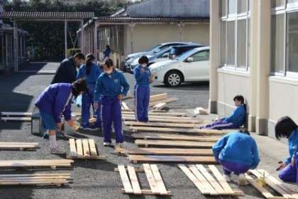 不要となった椅子の解体や新しいすのこのニス塗り、伐採した木の片付け、下駄箱のペンキ塗りなど、とても一生懸命行いました。